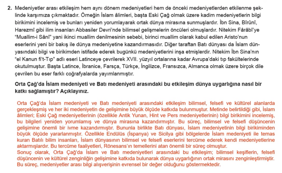Örnek Soru 2: SLY 2 Kültür ve Medeniyet